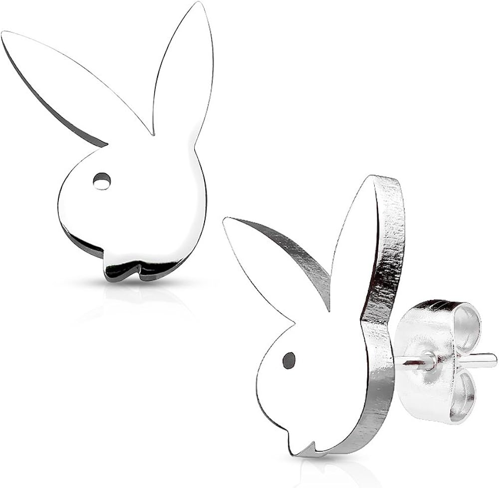 Coppia Di Orecchini A Perno In Acciaio Inox 316l Con Coniglietto Playboy Uomo Gioielli