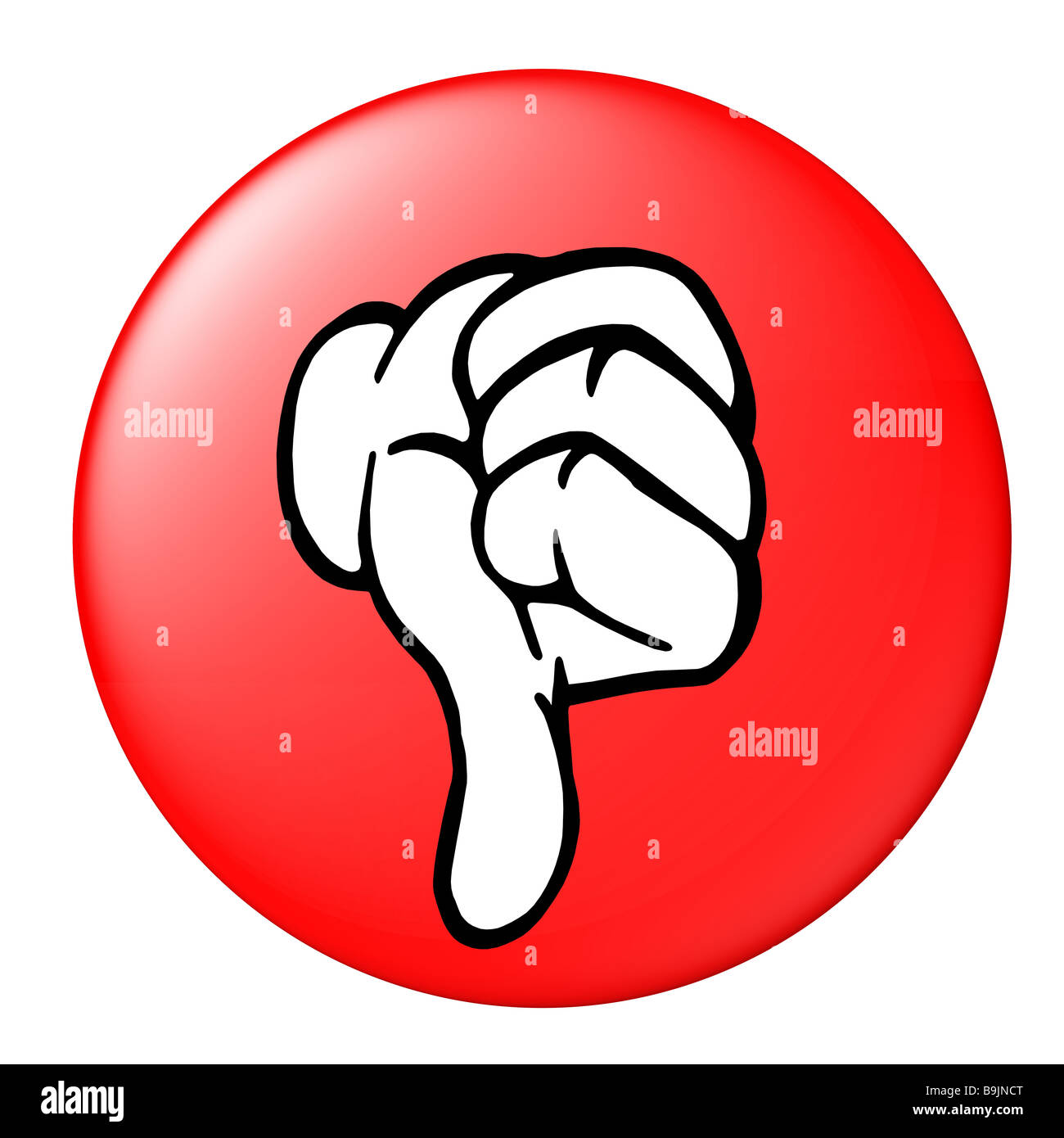 Una Mano Rossa Dando Il Pollice In Giu A Firmare Tutti I Su Uno Sfondo Bianco Foto Stock Alamy
