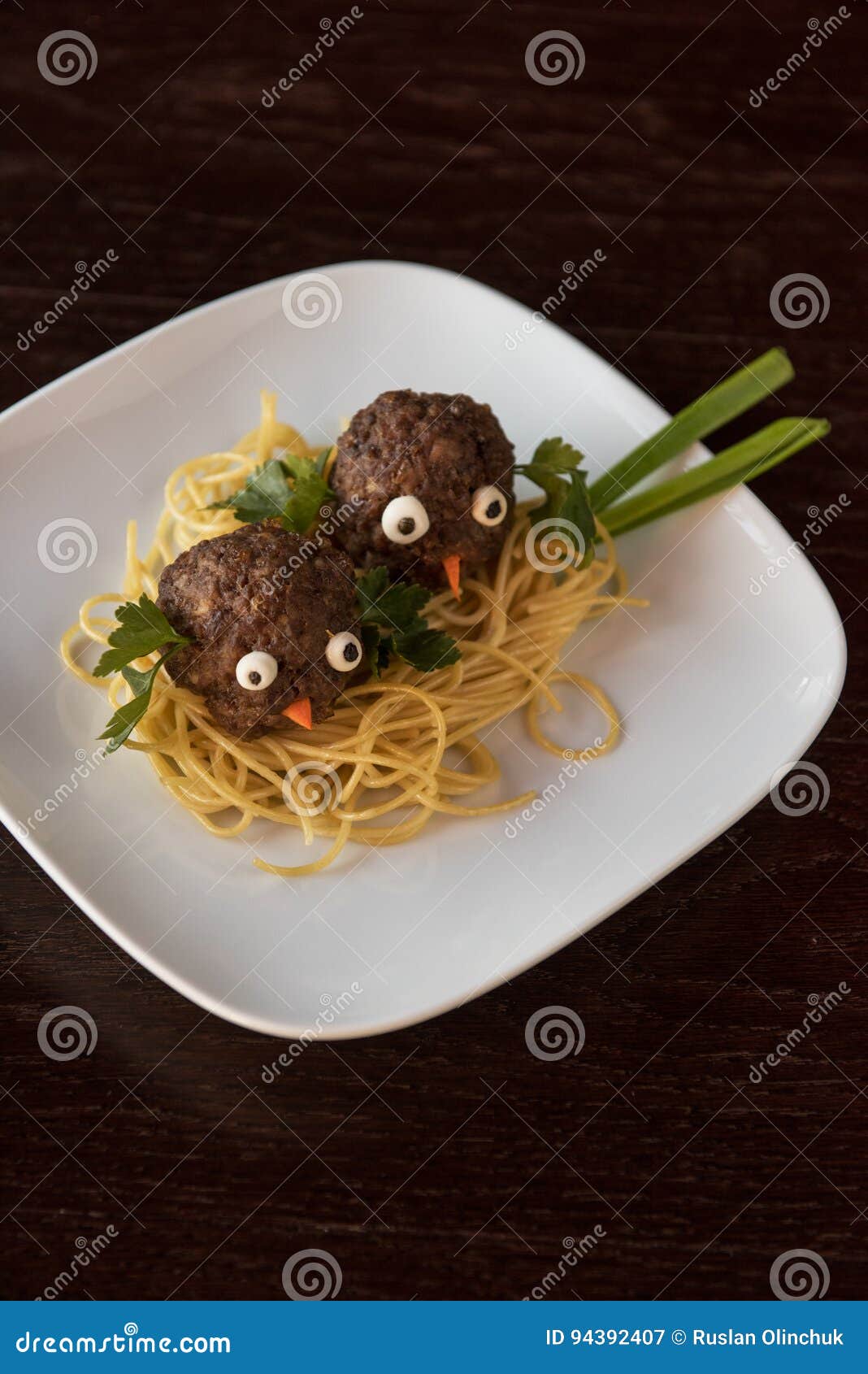Polpette Divertenti Con Pasta Immagine Stock Immagine Di Consumo Pranzo 94392407