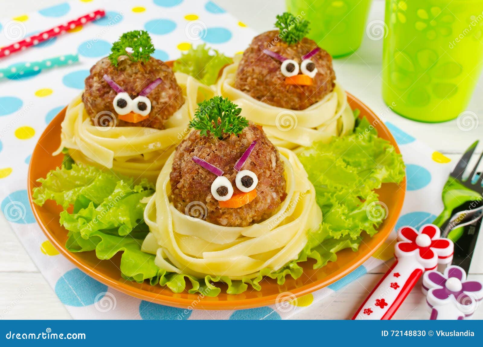 Spaghetti Divertenti Con Le Polpette Per I Bambini Fotografia Stock Immagine Di Breakfast Divertimento 72148830