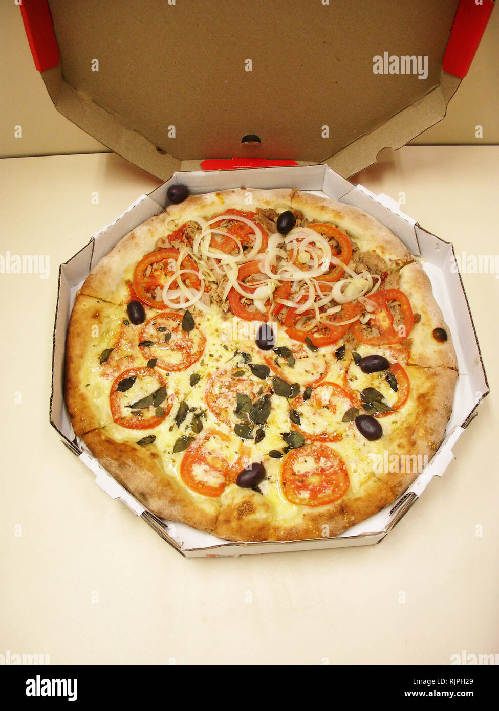 Margherita And Tuna Pizza In Box Sao Paulo Brazil Stock Photo Alamy