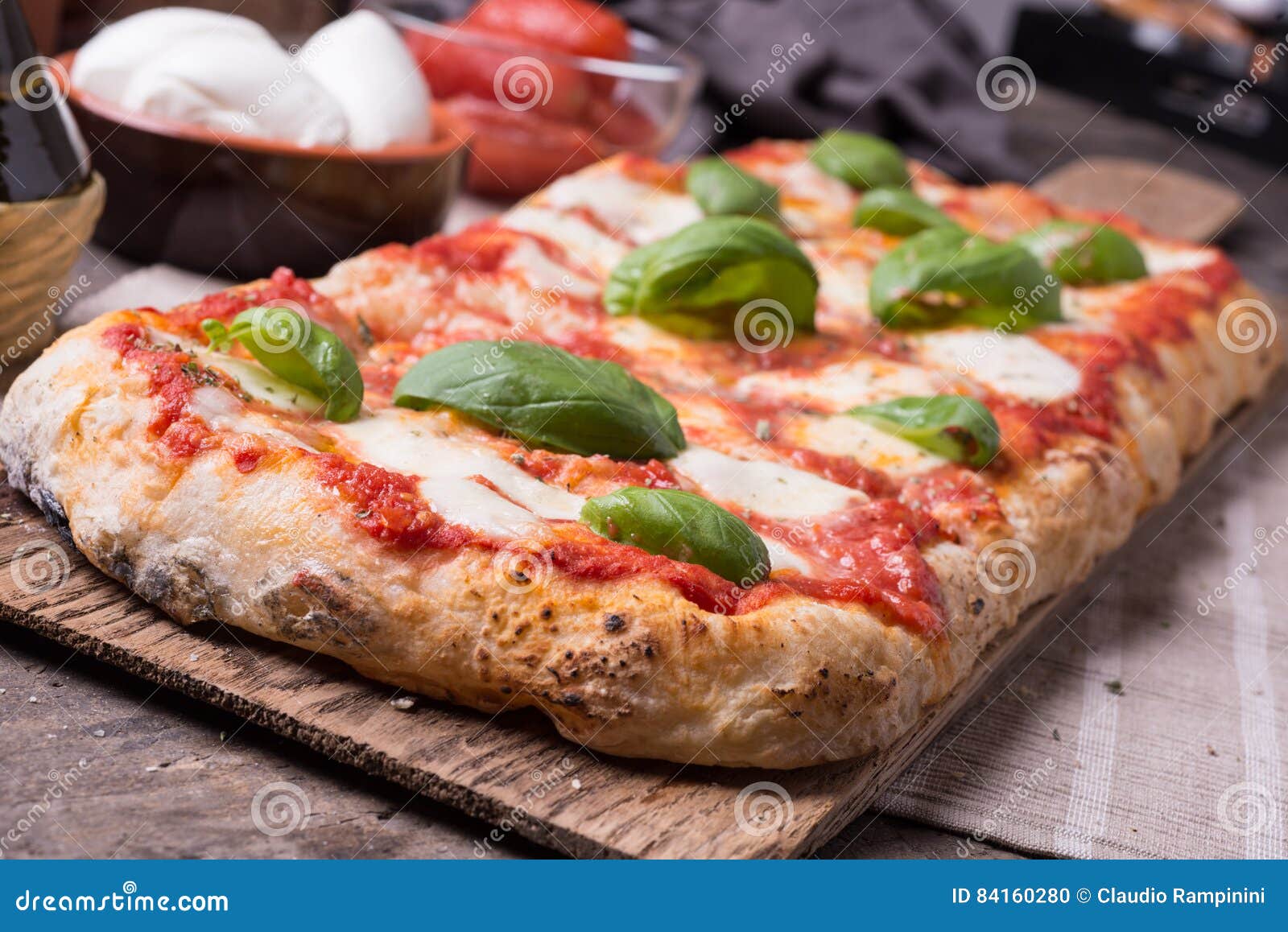 Rectangular Romana S Pizza Stock Photo Image Of Basil 84160280