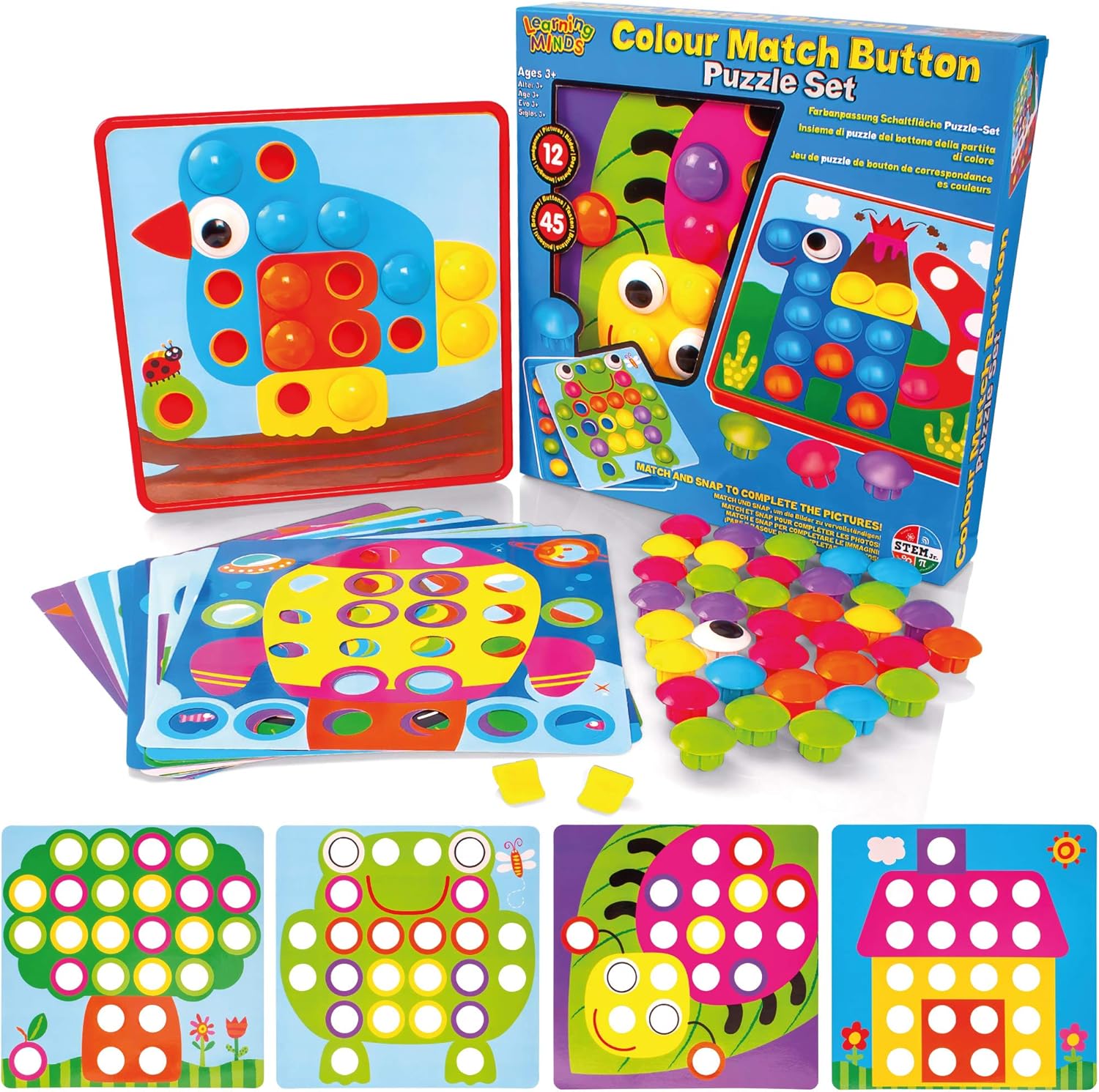 Learning Minds Colour Match Button Art Puzzle Set Educational Mosaic Picture Pegboard Toy For Kids Amazon Co Uk Toys Games