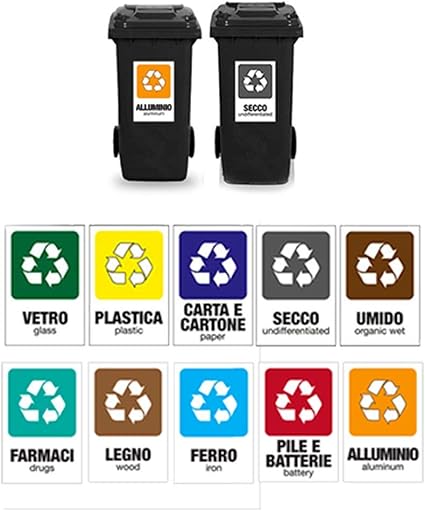 Kamiustore Pack Di 10 Cartelli Adesivi 20 X 30 Cm Raccolta Differenziata Rifiuti Speciali Vetro Plastica Umido Carta Indifferenziata Ferro Pile E Batterie Alluminio Farmaci Legno Amazon It Casa E Cucina