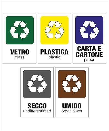 Kamiustore Pack Di 5 Cartelli Adesivi 20x30 Cm Raccolta Differenziata Per Rifiuti Carta Secco Umido Vetro Plastica Uso Interno Amazon It Casa E Cucina