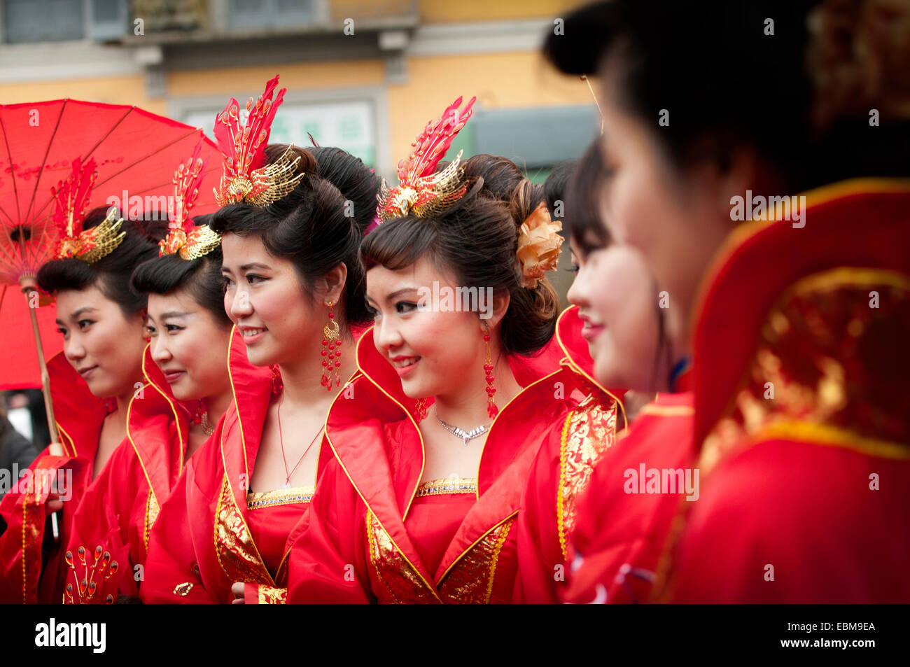Un Gruppo Di Giovani Ragazze Cinesi Durante Il Capodanno Cinese A Milano Foto Stock Alamy