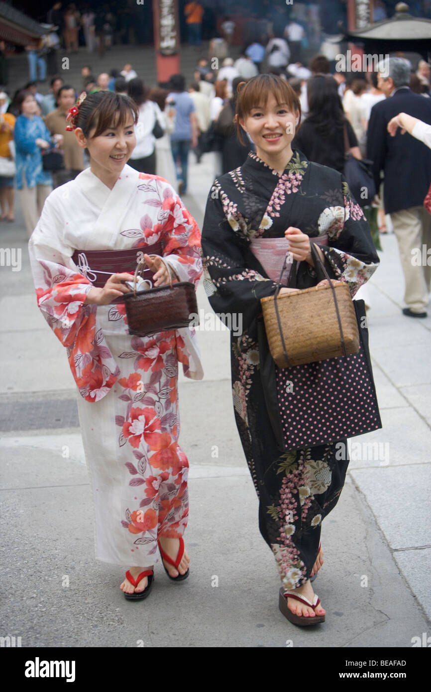 Le Ragazze Giapponesi Che Indossano Il Tradizionale Kimono In Senso Ji Tempio Di Asakusa Tokyo Giappone Foto Stock Alamy
