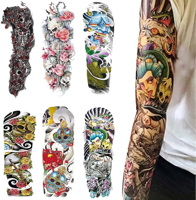 Adesivo Tatuaggio Temporaneo Completo Per Braccio 6 Sheets Grande Tataggi Temporanei Adesivi Tatuaggio Corpo Temporanei Per Body Art 1 Amazon It Bellezza