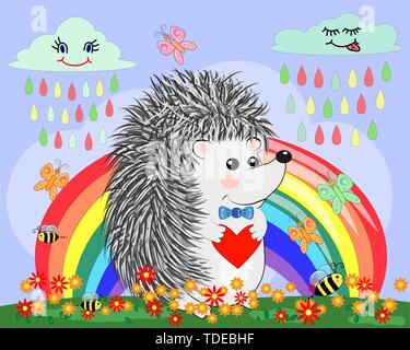 Libro Da Colorare Pagina Per Bambini In Eta Prescolare Con Sfondo Colorato E Disegna Un Riccio Per La Colorazione Immagine E Vettoriale Alamy