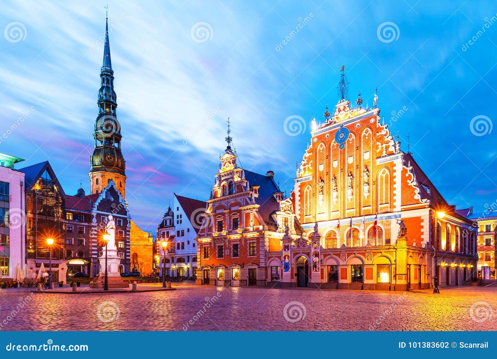 Paesaggio Di Sera Di Citta Vecchia Hall Square A Riga Lettonia Fotografia Stock Immagine Di Architettura Illuminato 101383602