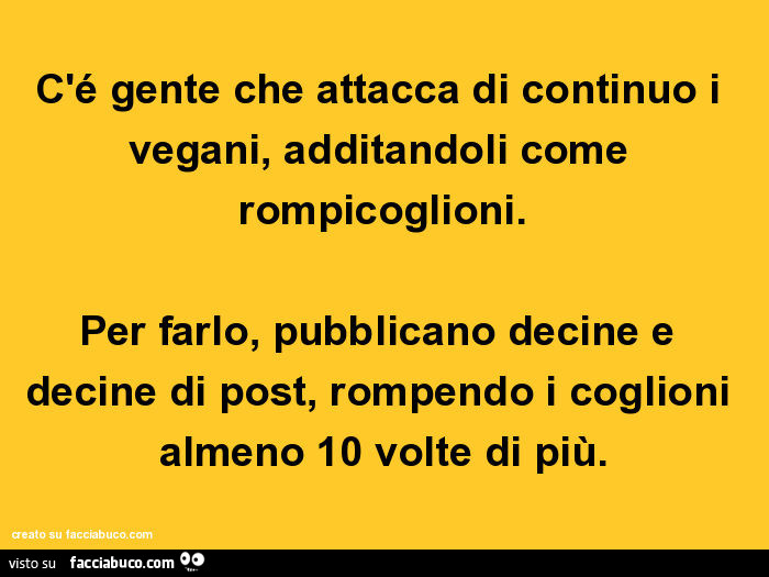 C E Gente Che Attacca Di Continuo I Vegani Additandoli Come Rompicoglioni Facciabuco Com