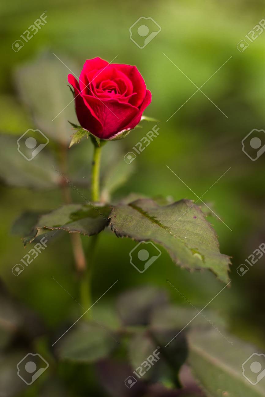 Immagini Stock Piccola Rosa Rossa E In Fiore Nel Giardino Image 84849559
