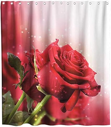 Wild One Curtain Rose Romantiche Per Innamorati In San Valentino Tessuto A Tema Floreale Fiori Di Rosa Rossa Con Foglie Set Di Tende Per Doccia Bagno Con Ganci W122 X H183 Cm 48x72 Pollice
