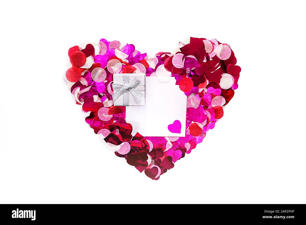 Il Giorno Di San Valentino Cuore Forma Realizzato In Rosa Glitter Cuori Con Spazio Copia Scheda