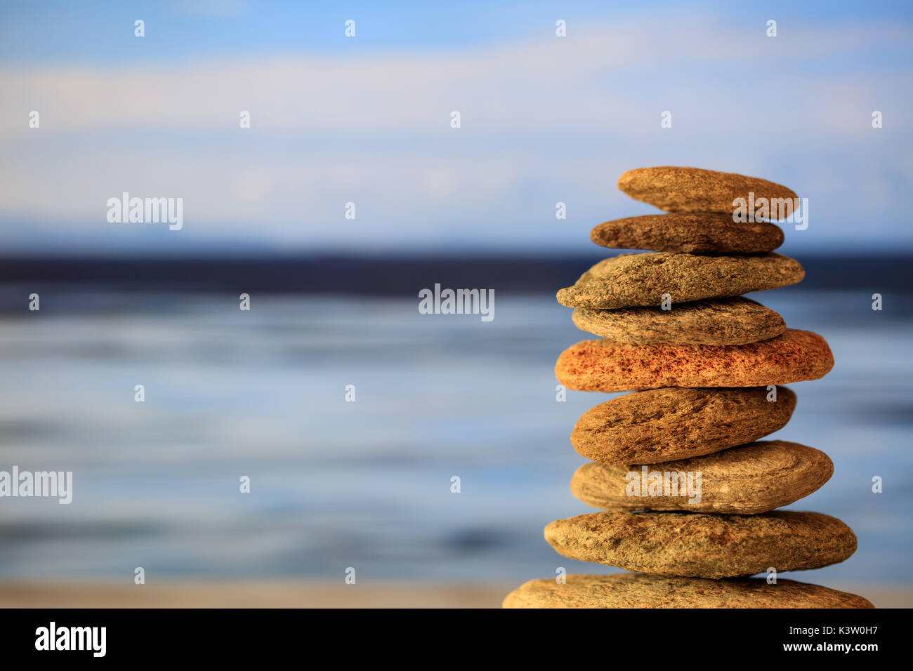 Zen Sassi Accatastati Sul Cielo Blu E Lo Sfondo Del Mare Foto Stock Alamy