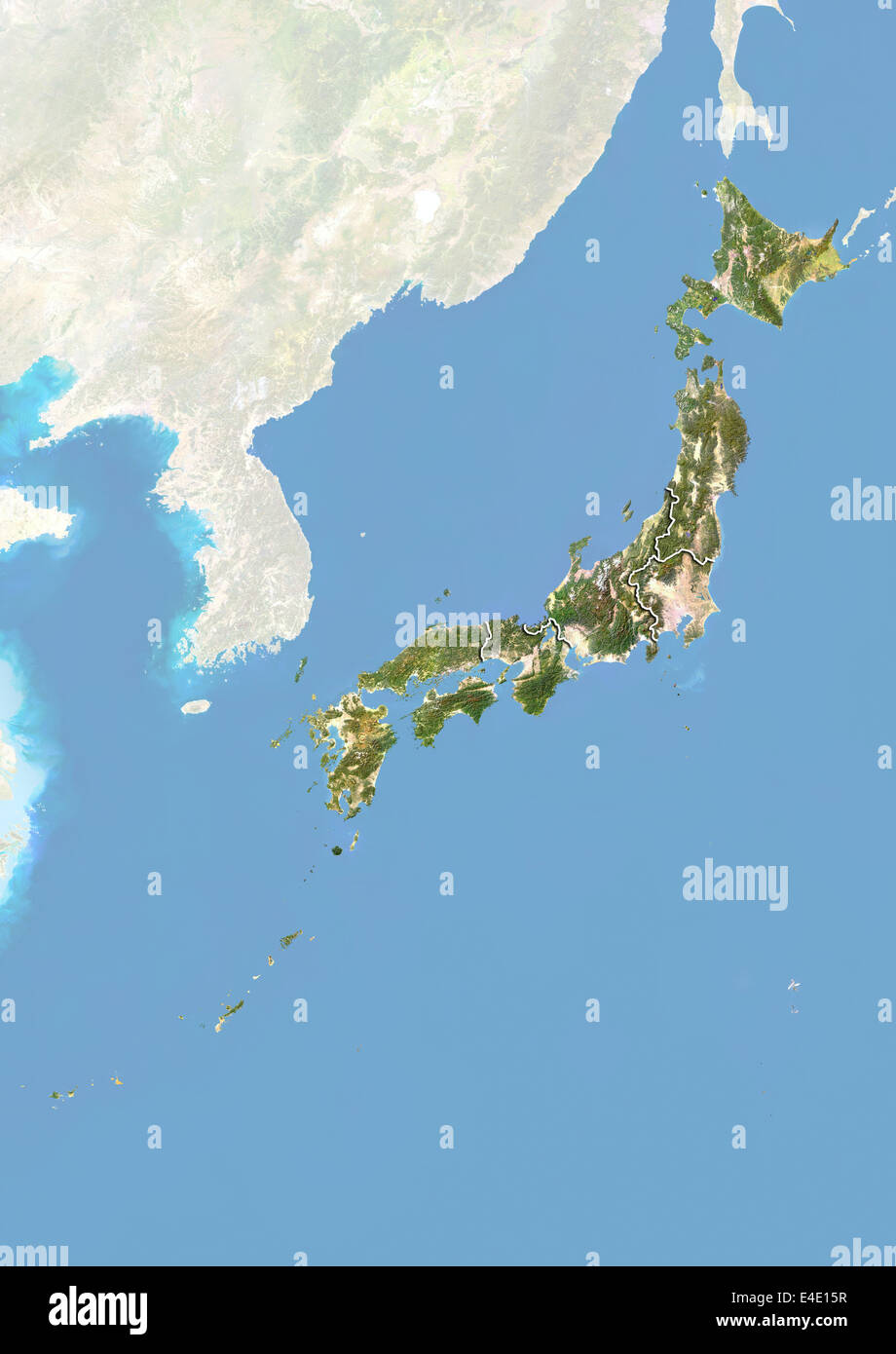 Giappone Immagine Satellitare Con Effetto Bump Con I Confini Delle Regioni Foto Stock Alamy