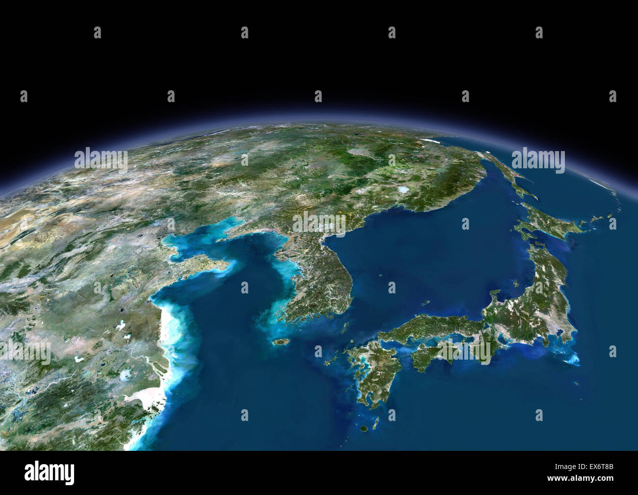 Vista Satellitare Del Giappone E La Penisola Coreana Con I Confini Del Paese Questa Immagine E Stata Elaborata Sulla Base Dei Dati Acquisiti Dai Satelliti Landsat Foto Stock Alamy