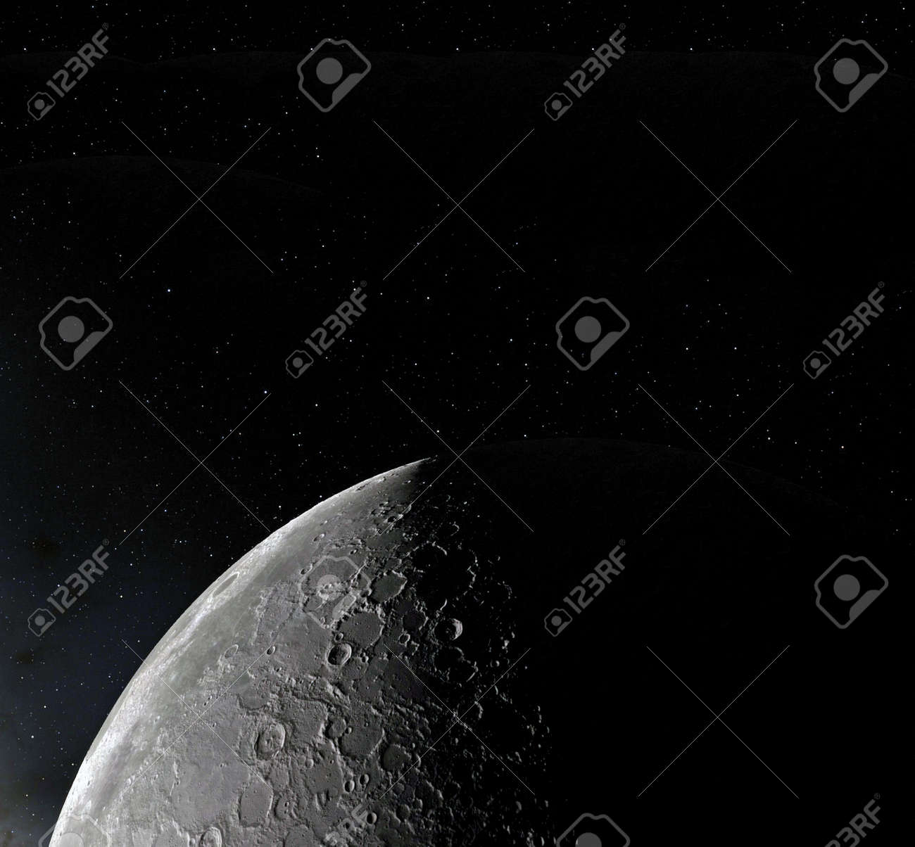 Immagini Stock Superficie Lunare Rendering 3d Realistica Di Luna E Spazio Spazio E Pianeta Satellitare Nebulosa Stelle Image 94824733
