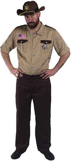 Uomo Noi Sceriffo Costume Di Fantasia Adulti 4 Pezzo Costume Sceriffo Con Camicia Beige Distintivo Dello Sceriffo Di Plastica Cappello Da Cowboy E Pantaloni Marroni Grande Amazon It Giochi E Giocattoli