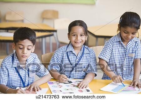 Scolari Disegno In Uno Aula Archivio Immagini U21473763 Fotosearch