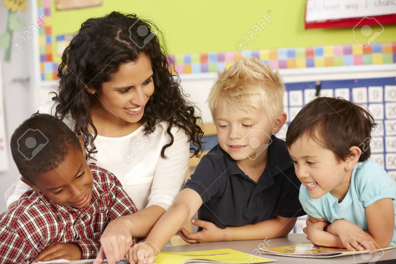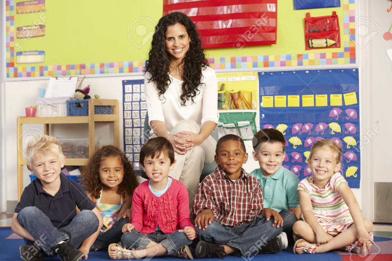 Immagini Stock Gruppo Di Eta Scolare Scolari In Classe Con Insegnante Image 42109200