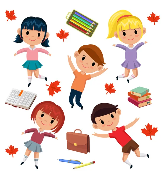 Scolari Cartone Animato Scuola Vettore Cartone Animato Illustrazione Bambini Canstock