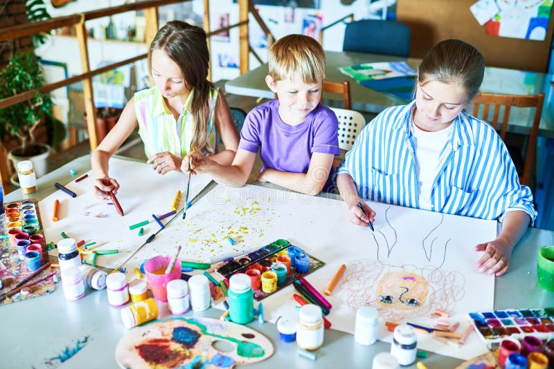 Tre Scolari Che Dipingono Le Immagini Immagine Stock Immagine Di Immagine Gruppo 116538253