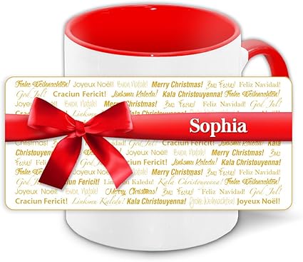 Thun Tazza Con Nome Sofia E Scritta N 10 16 Cm E Giallo Dorato Con Scritta Buon Natale In Diverse Lingue Amazon It Casa E Cucina