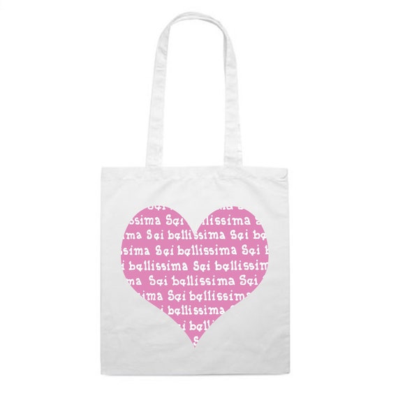 Cotton Tote Bag With Pink Heart And Sei Bellissima Etsy