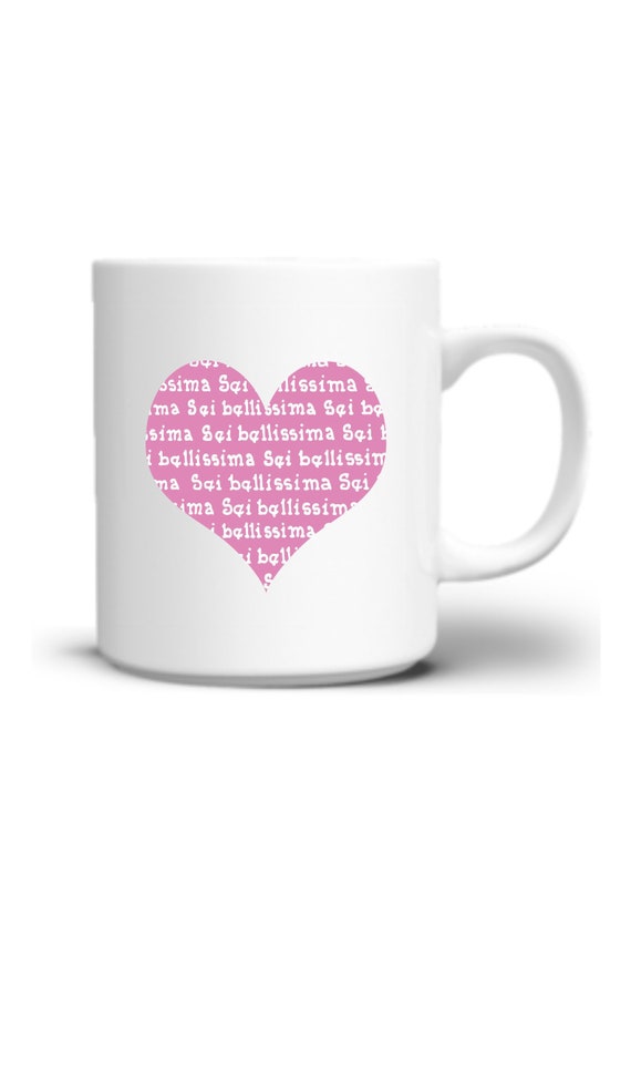 Ceramic Mug With A Pink Heart And Sei Bellissima White Etsy