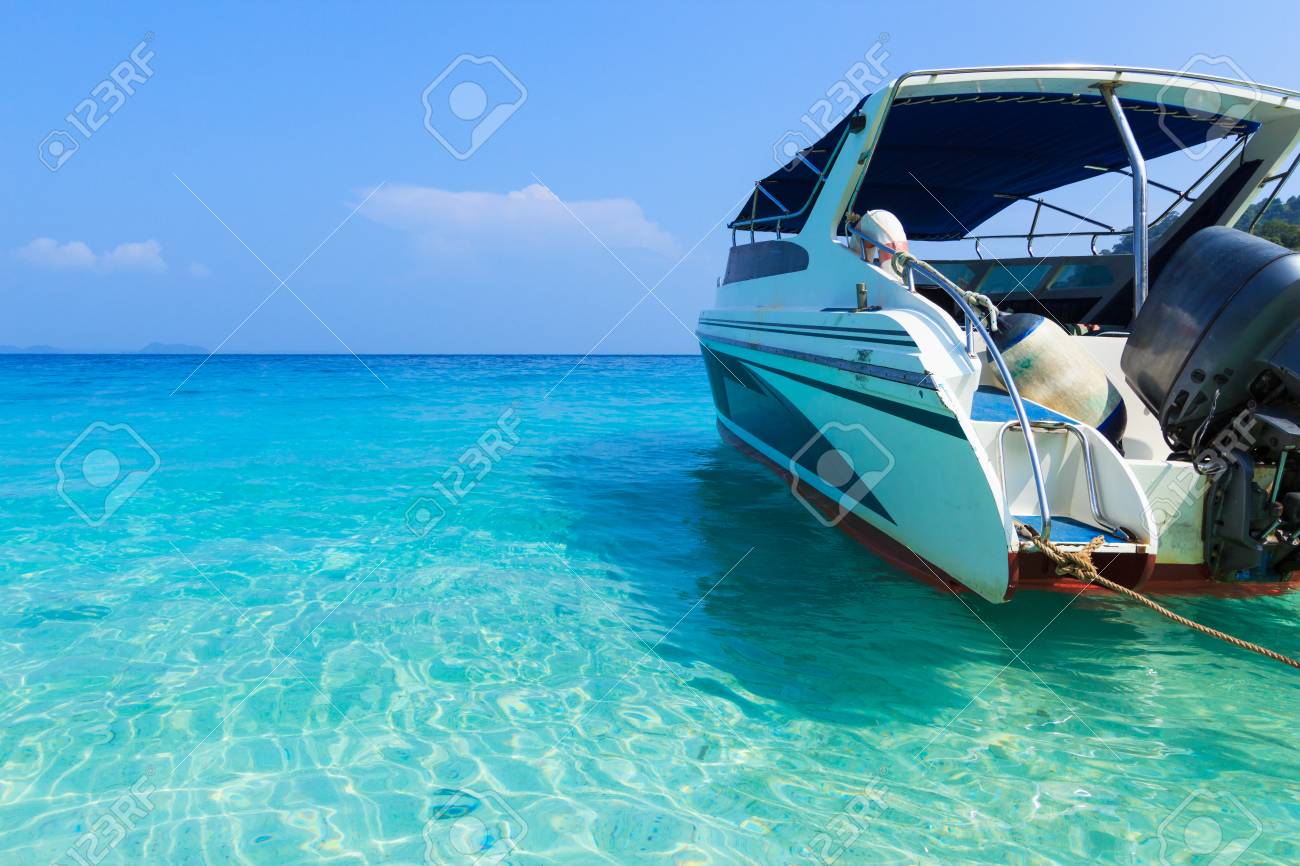 Immagini Stock Barca Di Velocita Sul Mare E Sullo Sfondo Del Cielo Blu Image 84609582