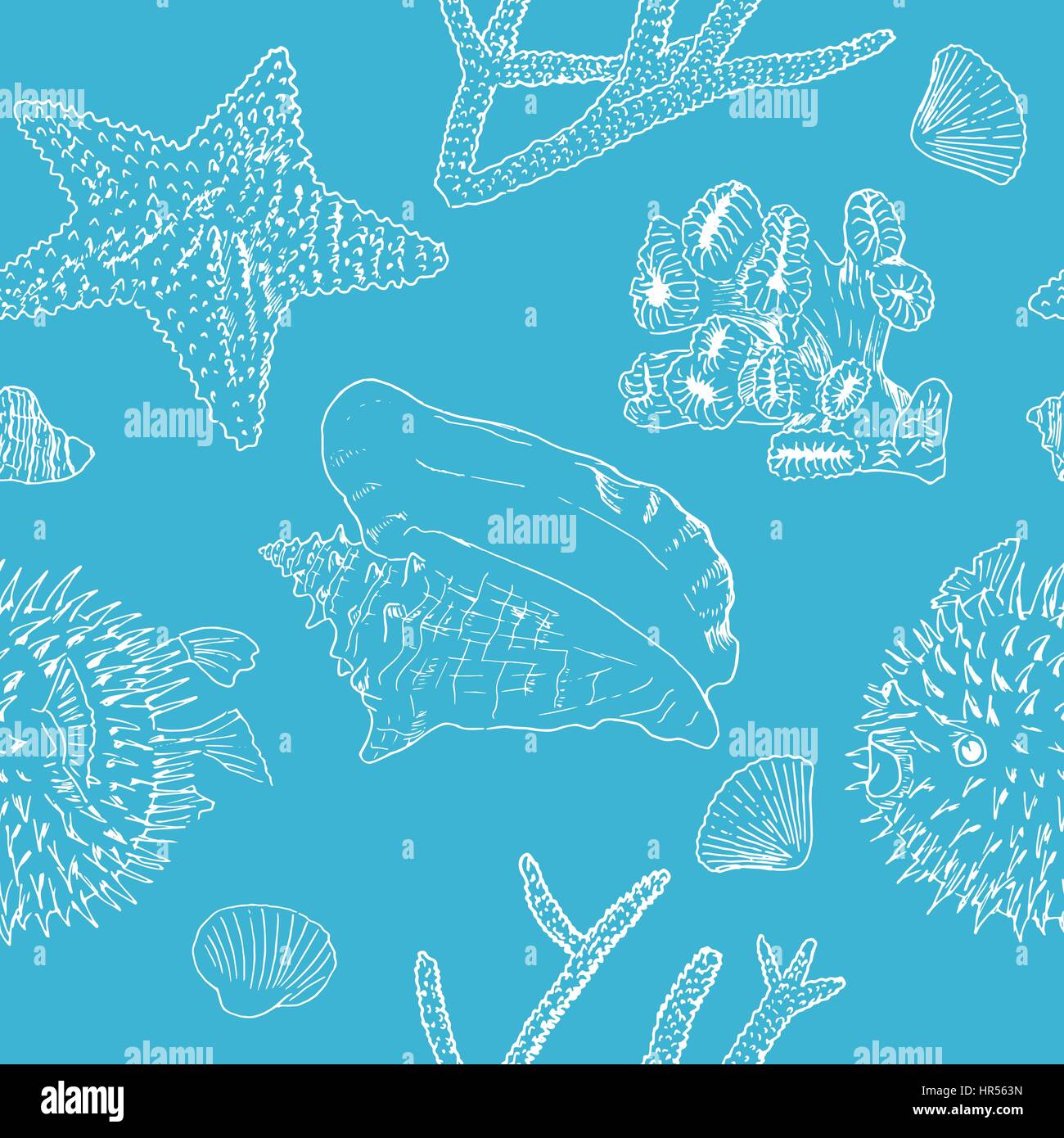 Sfondo Marino Seamless Pattern Silhouette In Bianco Su Blu Conchiglie Coralli E Stelle Marine Coralli Il Pesce Palla Sketch Stile Per I Messaggi Di Saluto Invit Immagine E Vettoriale Alamy