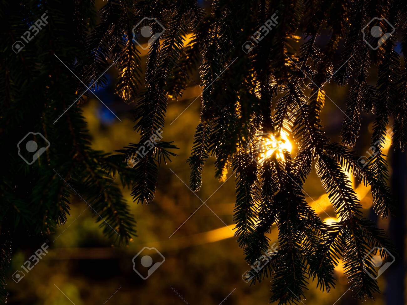 Immagini Stock Light Shining Through Spruce Branches Night Shot Image 105476616