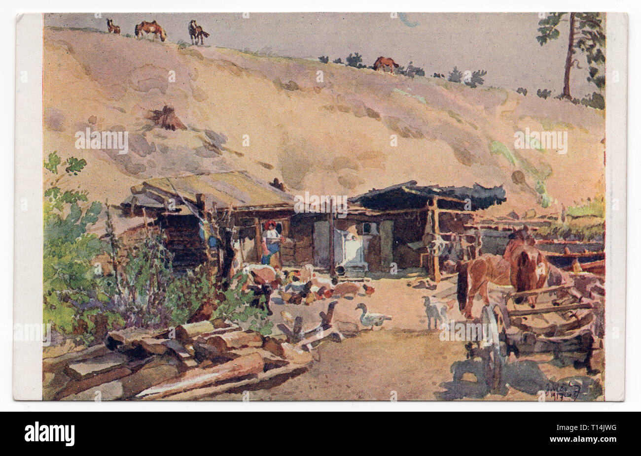 Siberiano Insediamento Rurale Khutor In Siberia Russia Raffigurata Nella Pittura Ad Acquerello Da Artista Ceco Jindrich