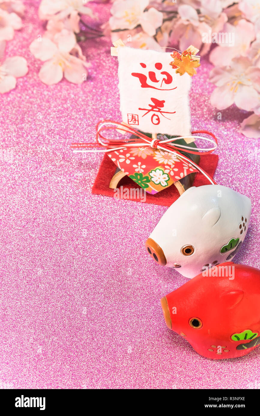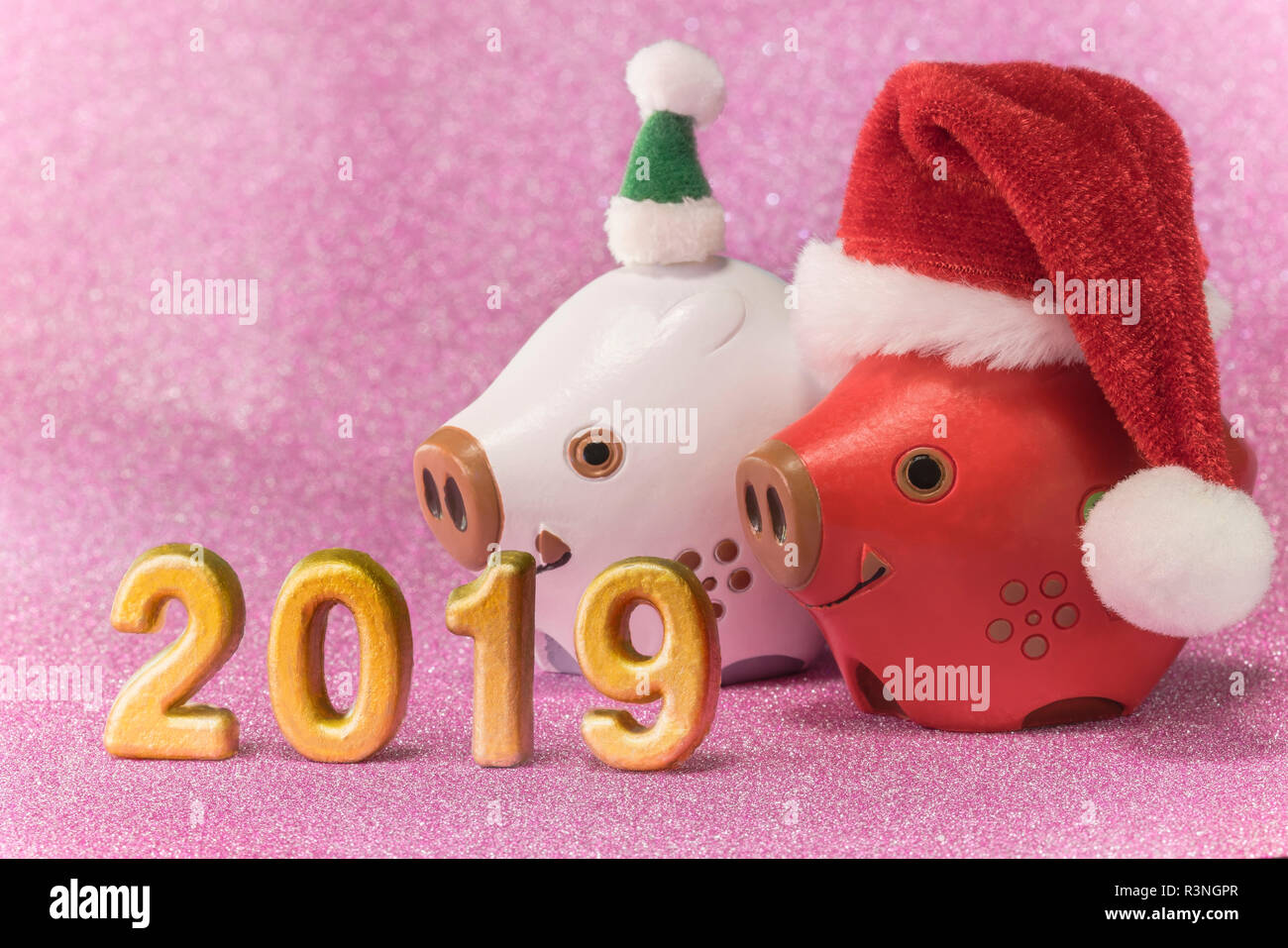 Rosa Glitter Sfondo Per Il Nuovo Anno Di Carte Con Simpatici Animali Figurine Di Due Cinghiali O Maiali Con Un Cappello Di Natale E Handmade Numeri Golden Di 201 Foto Stock Alamy