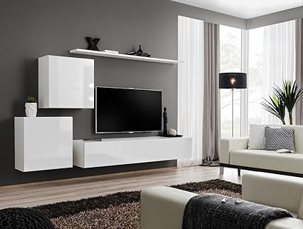 Elbectrade Cuarnan Mobile Soggiorno Moderno Sospeso Tutto Bianco Amazon It Casa E Cucina