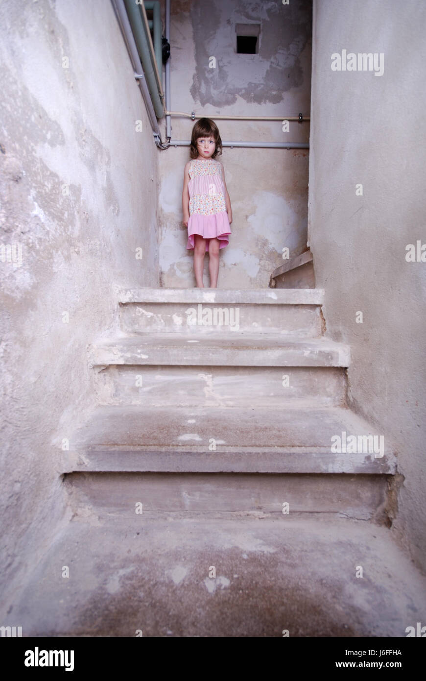 Triste Solitudine Tristezza Cantina Da Soli Lonely Bambino Ragazza Ragazze Stand Scale Freddo Foto Stock Alamy