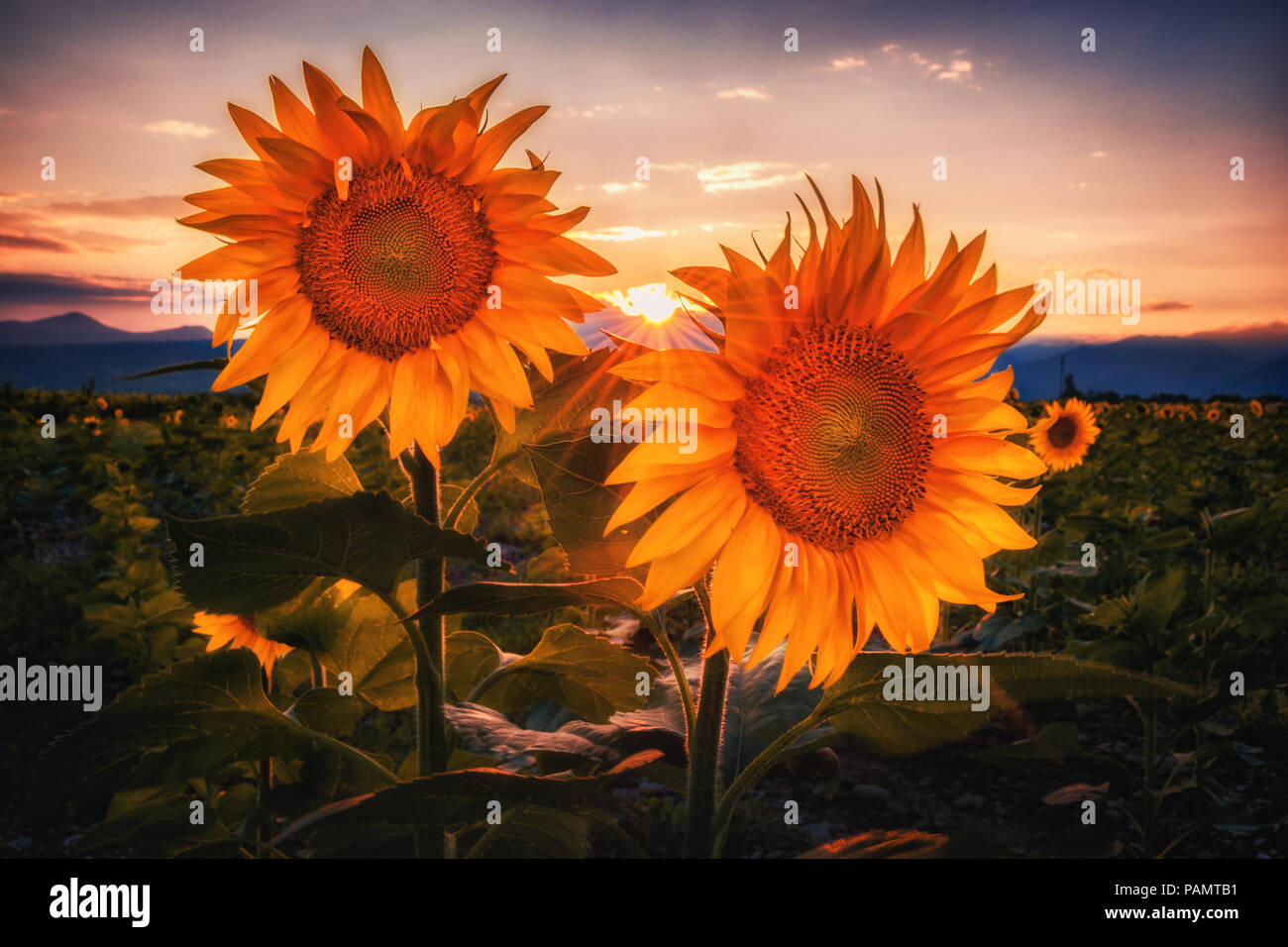 Splendide Immagini Di Girasoli Su Un Tramonto A Sopot Vicino A Plovdiv Bulgaria Beautoful Immagine Estiva Foto Stock Alamy