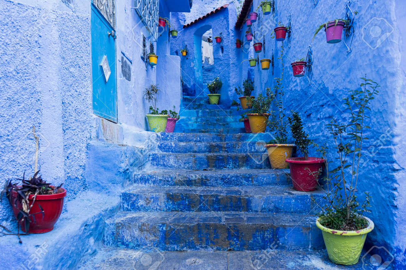 Immagini Stock Viaggia Tra Le Splendide Strade Della Citta Blu Di Chefchaouen In Marocco Image 58460398