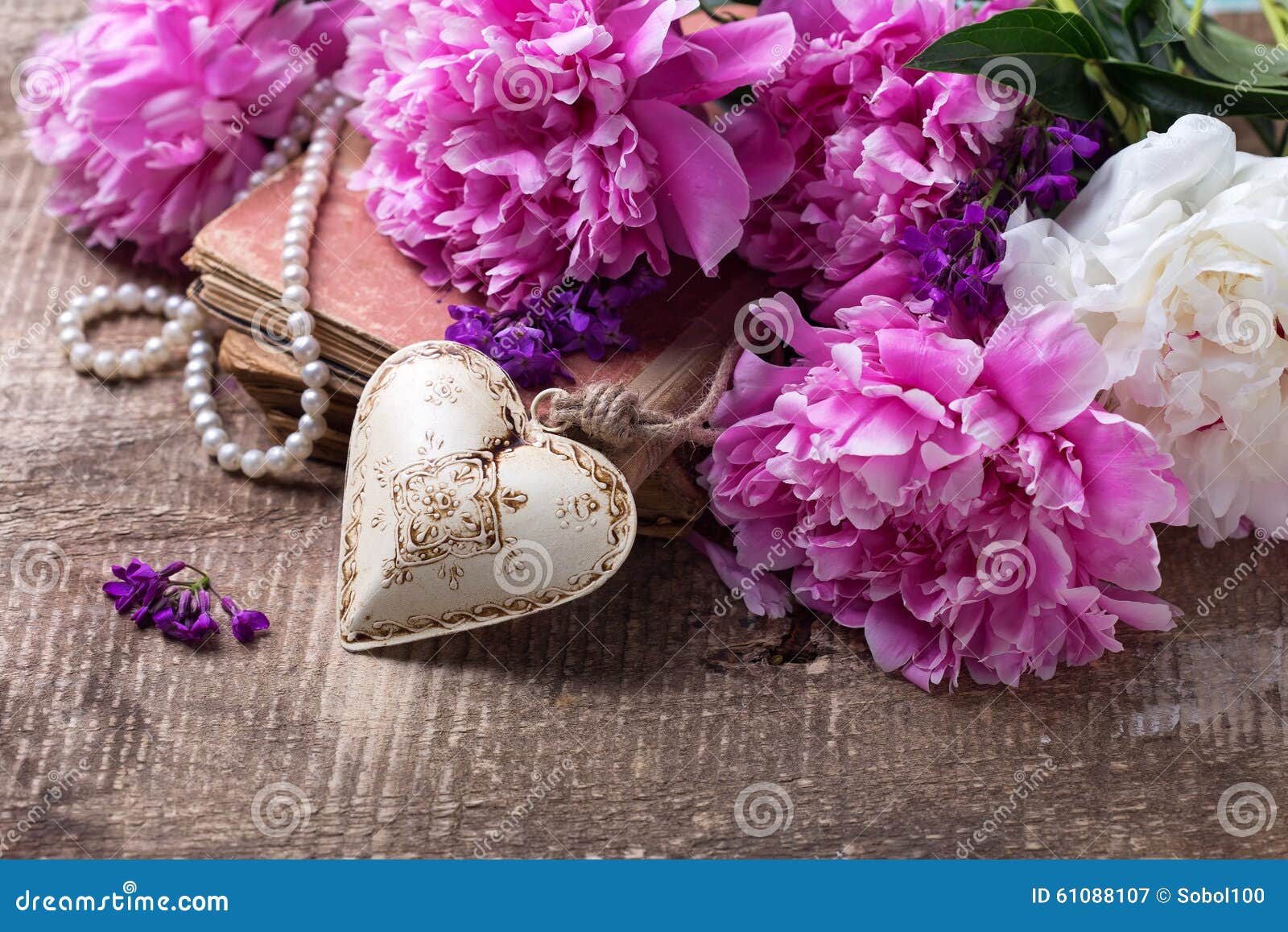 Cuore Decorativo E Peonie Rosa E Bianche Splendide Immagine Stock Immagine Di Cuore Decorativo 61088107