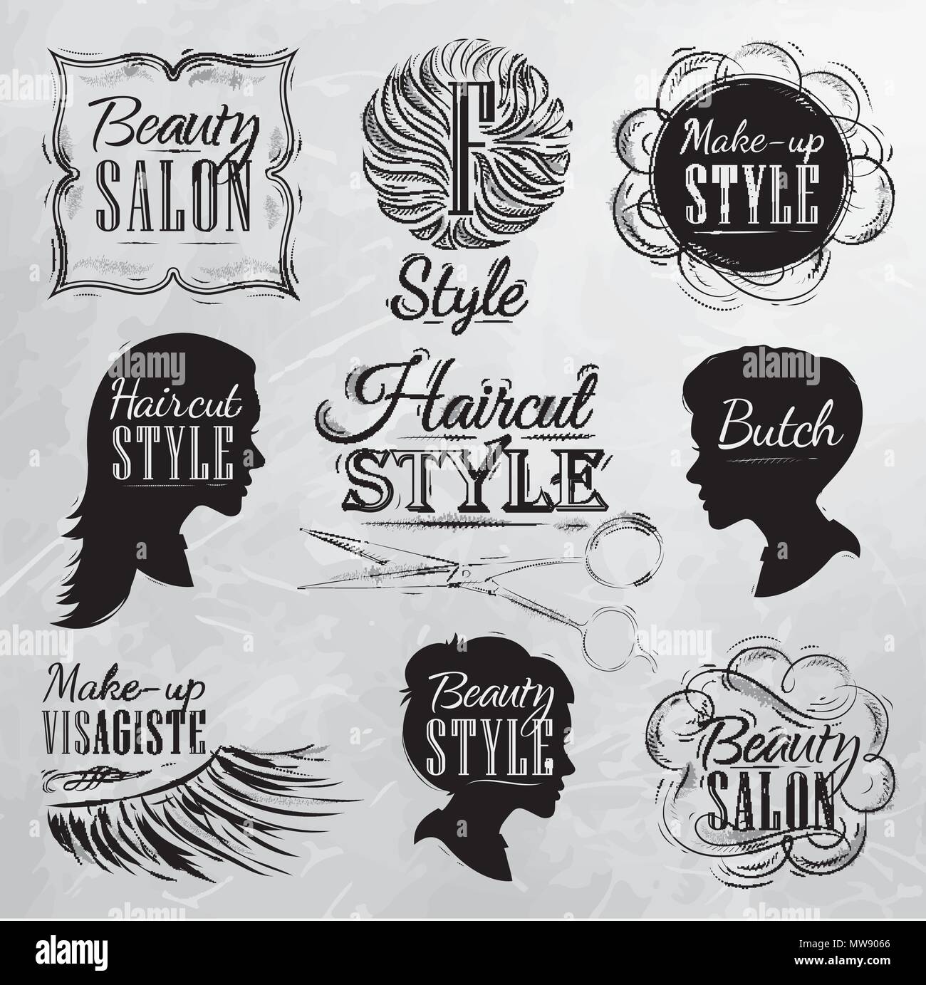 Insegne Stilizzate Per Il Parrucchiere Illustrazione Vettoriale Illustrazione Di Pelliccia Scheda 75786668