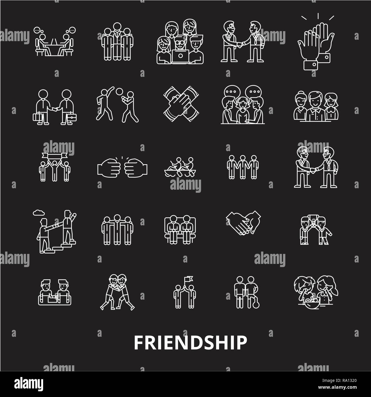 L Amicizia Della Linea Modificabile Vettore Icone Impostato Su Sfondo Nero Amicizia Profilo Bianco Illustrazioni Segni Simboli Immagine E Vettoriale Alamy