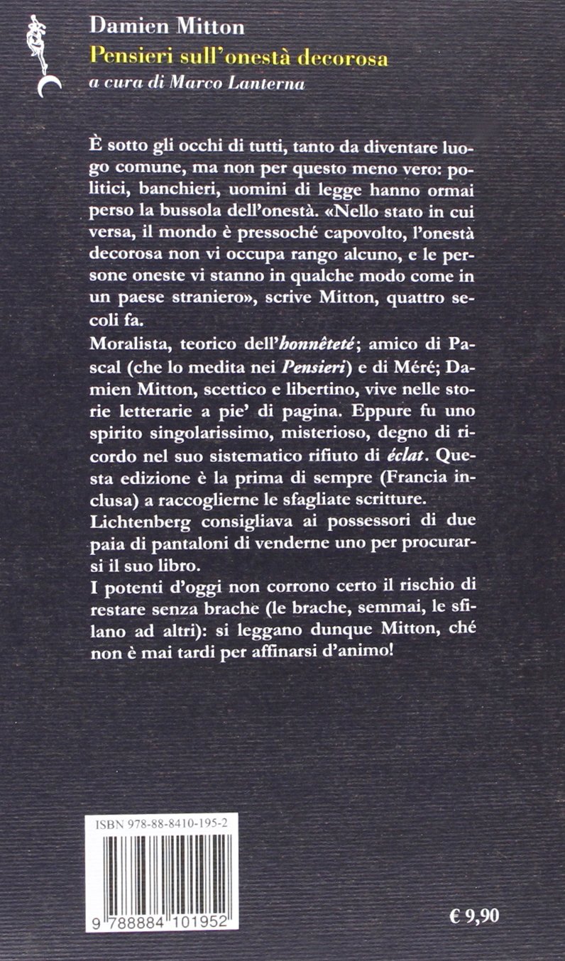 Pensieri Sull Onesta Decorosa E Altri Scritti Damien Mitton Libro Clinamen La Biblioteca D Astolfo Ibs