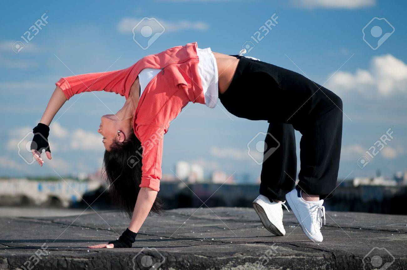 Ballerina Su Un Braccio Balla La Danza Hip Hop Acrobata Dell Artista Citta D Estate Nuvole In Sottofondo Stile Di Vita Giovani Immagine Stock Immagine Di Giovani Danza 161210373