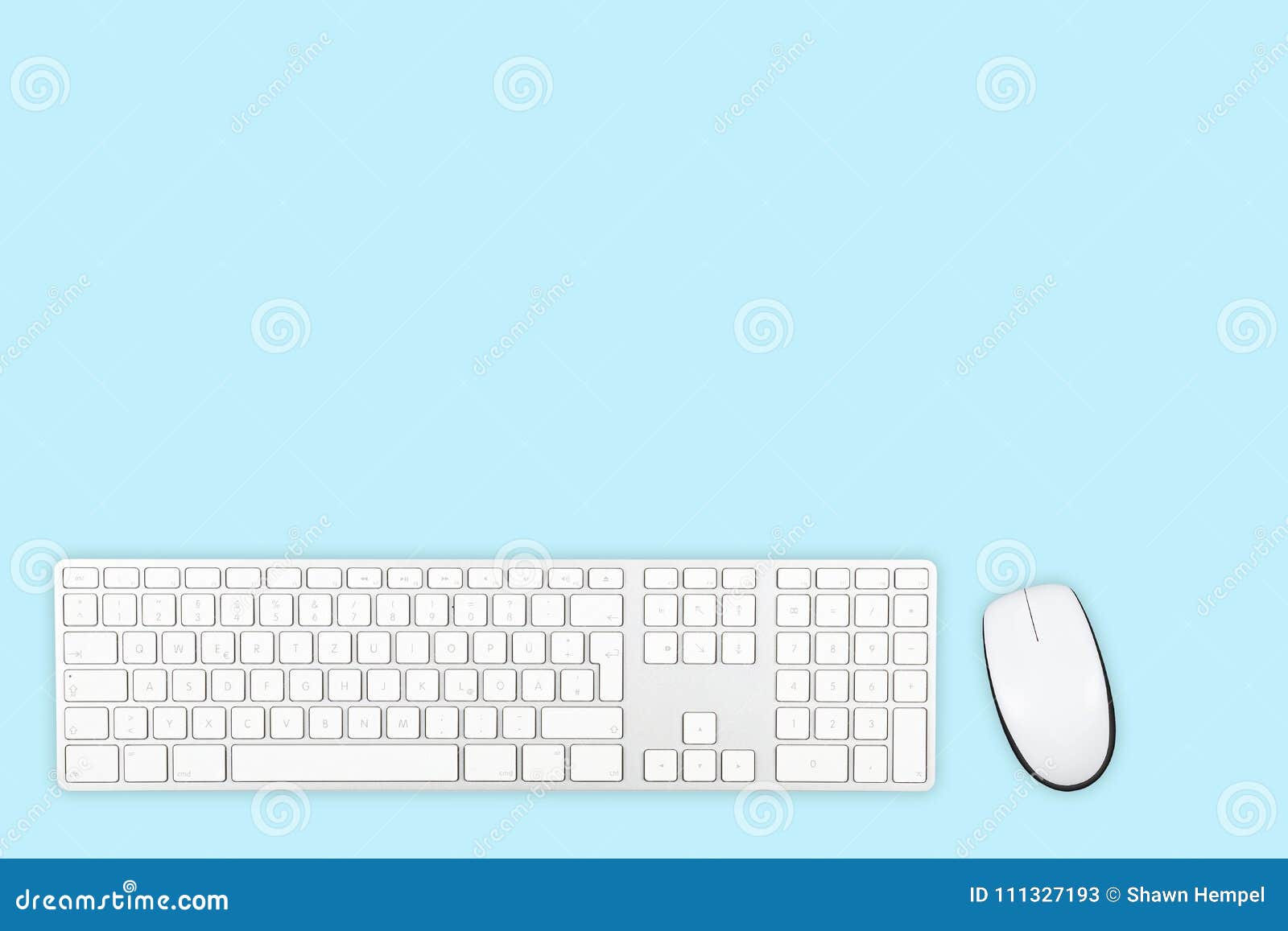 Blue Pastel Colored Office Desk Top View With Computer Mouse And Stock Image Image Of Empty Space 111327193