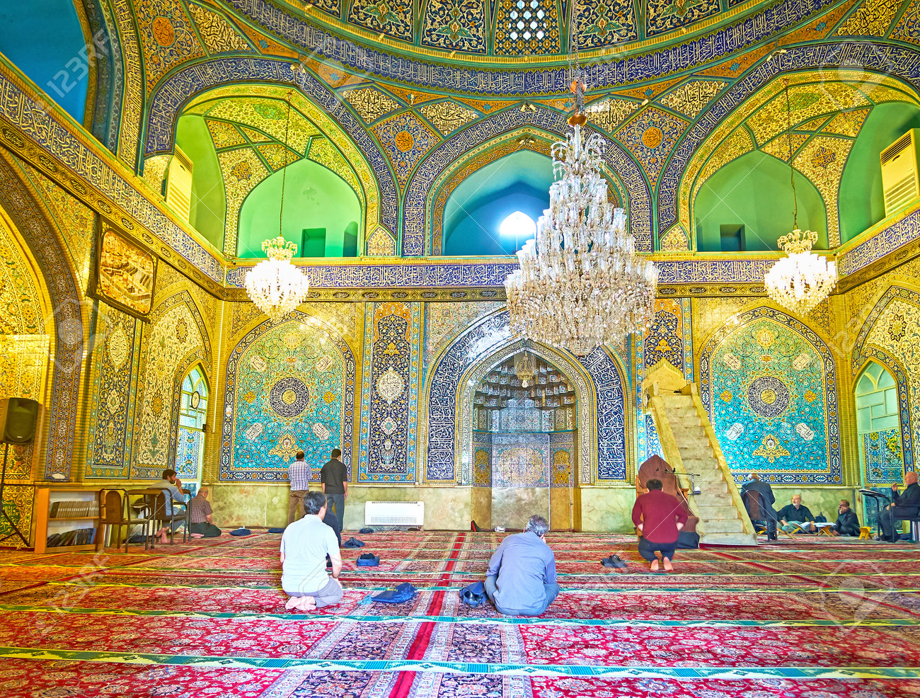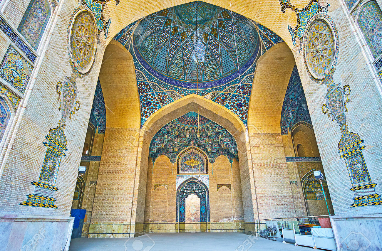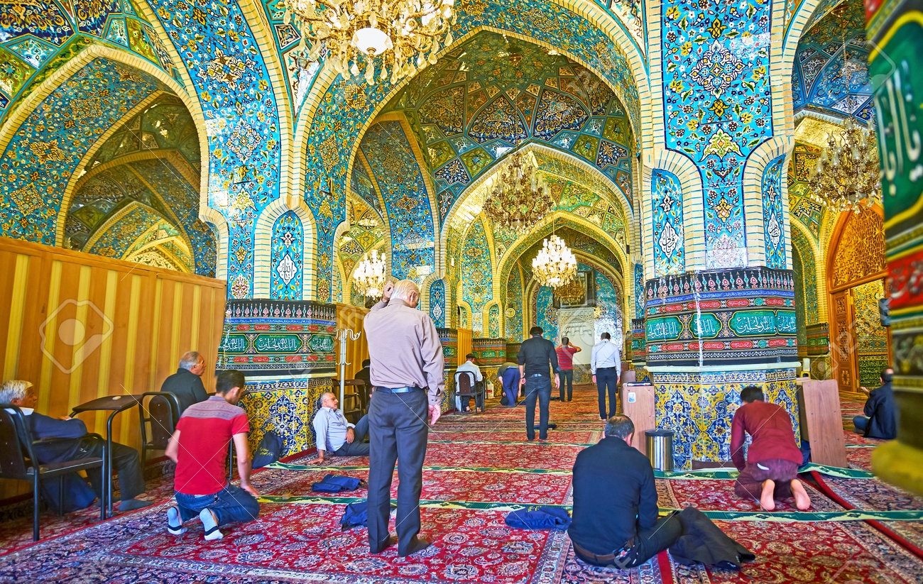 Immagini Stock Teheran Iran 11 Ottobre 2017 Il Corridoio Di Preghiera Della Moschea Dello Scia Con Molte Colonne Costruzione Ad Arco E Modelli Piastrellati L 11 Ottobre A Teheran Image 89896496