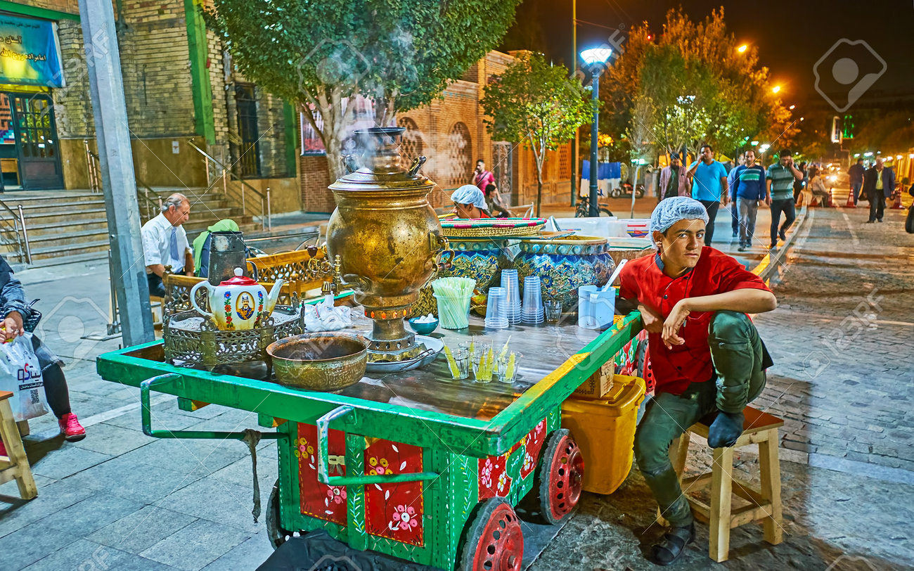 Immagini Stock Teheran Iran 11 Ottobre 2017 Il Ragazzo Vende Te Caldo Persiano Tradizionale Bollito In Samovar Dal Carretto Di Legno In Via Di Bab Homayoon L 11 Ottobre A Teheran Image 89899487