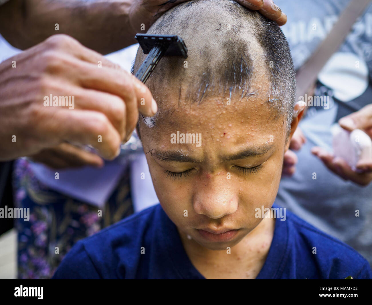 Chiang Mai E Chiang Mai Thailandia 3 Apr 2018 Un Ragazzo Shan Ha La Sua Testa