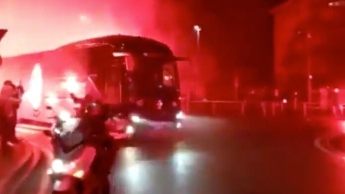 Milan Accoglienza Da Brividi Allo Stadio Il Muro Di Fuoco Dei Tifosi Circonda Il Bus Della Squadra Video Video