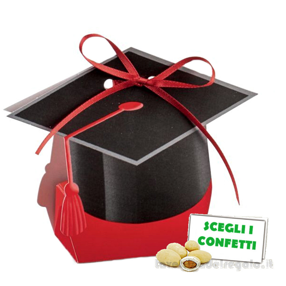 Tocco Bomboniere Laurea A Forma Di Cappello Con Nastro Rosso E Confetti Rossi